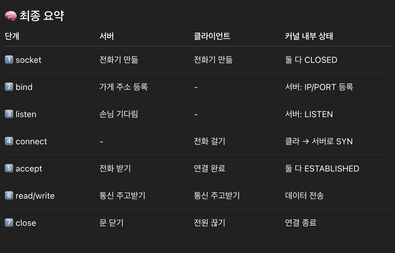 --> 커널: TCP용 IPv4 소켓 하나 만듦