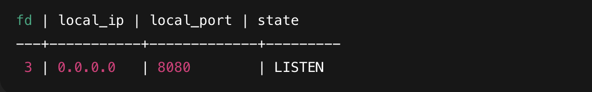 --> 커널: 이 소켓은 0.0.0.0 : 8080 (=모든 IP의 8080포트) 담당하도록 설정